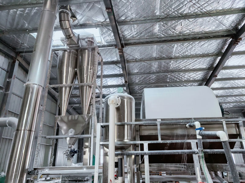 5. The starch slurry after multi-stage pulverization and filtration still contains a small amount of fine fibers and other substances, and the starch slurry needs to be screened again with a new type of fine filter to obtain high-quality starch slurry. Cyclone separation is a key link in starch production, including starch extraction and refinement. Dehydration of starch is an indispensable link in the process of preparing starch. The refined starch milk must be dehydrated before drying to remove excess water in the starch milk, reduce the load of the drying process, and save a lot of energy. , And lay the necessary foundation for fast drying. After dehydration, the wet starch with a moisture content of 38%-40% enters the pipeline high-temperature instant starch drying equipment through the starch conveyor.